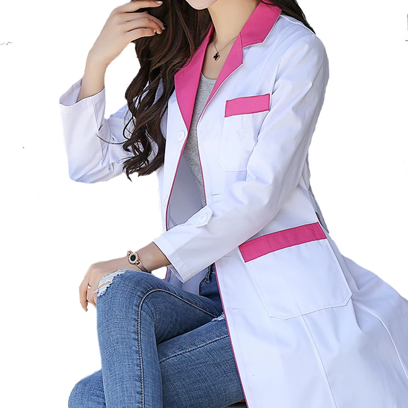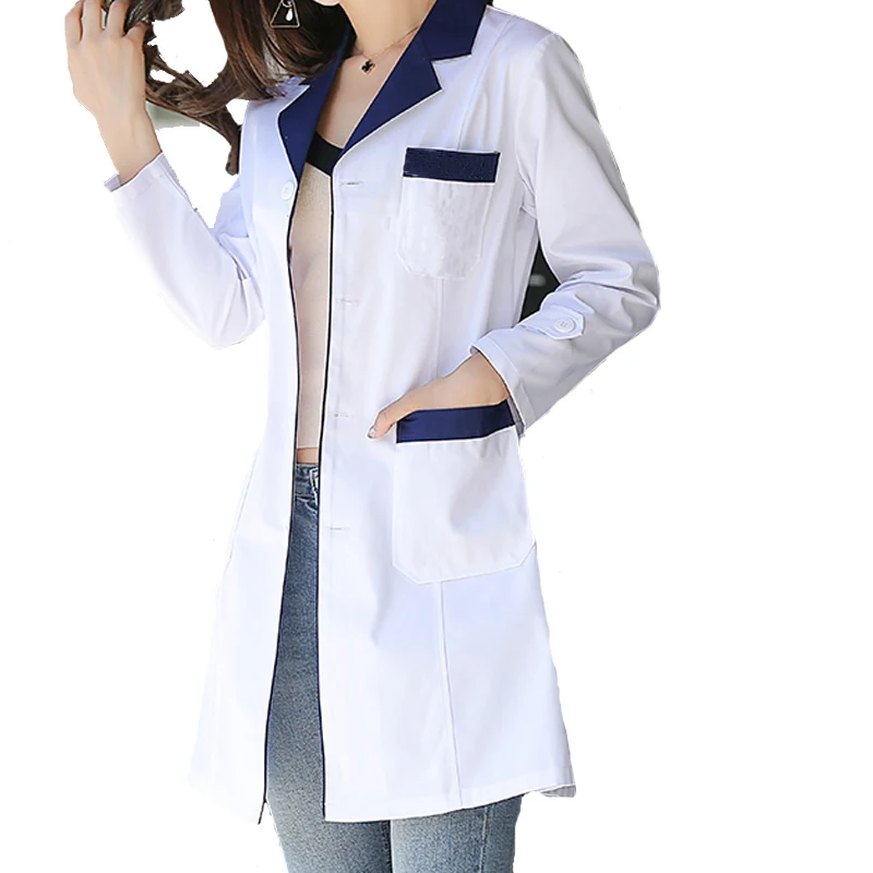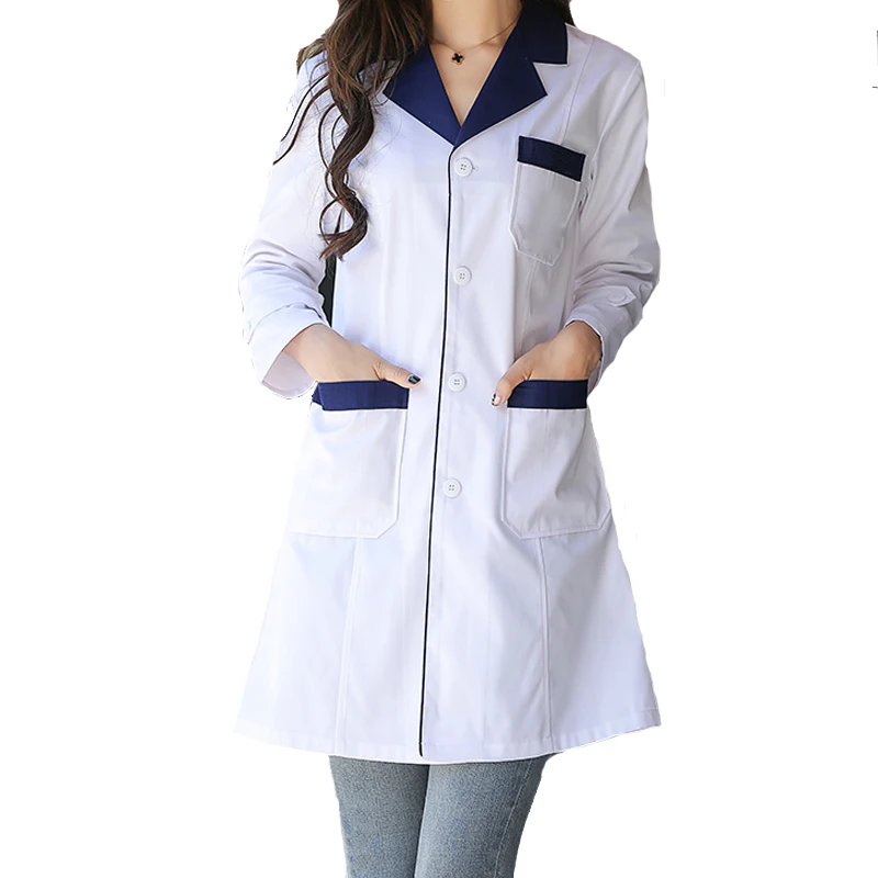 12% OFF!! SET Women Suit Long Sleeved 2 Colors(red Collar/dark Blue Collar) Lab Coat Pharmacy Doctor Overalls Uniform Nurse Health Coat