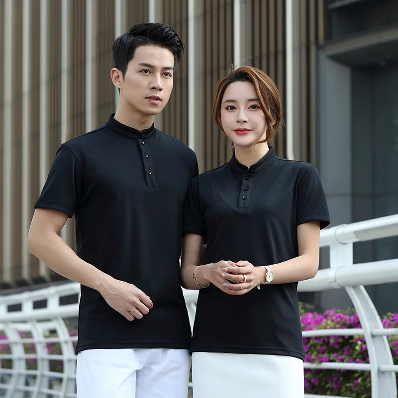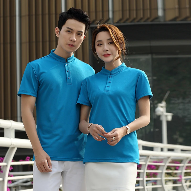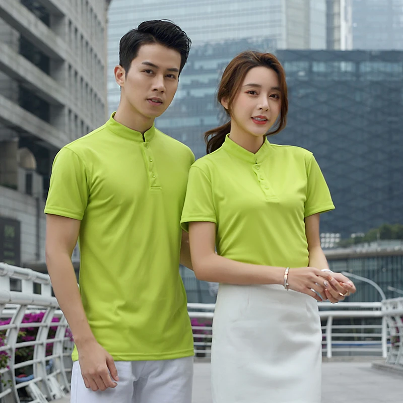 Male Female Unisex Short Sleeve Mesh Breathable Work Shirt Solid Color Food Service Cafe Waiter Work Wear Jackets Uniforms S-4XL
