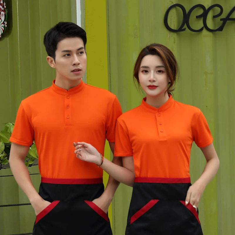 8% OFF!! Male Female Unisex Short Sleeve Mesh Breathable Work Shirt Solid Color Food Service Cafe Waiter Work Wear Jackets Uniforms S-4XL only $14.71