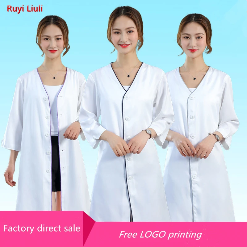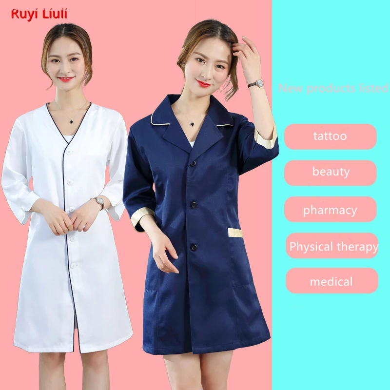 Semi-permanent white coat tattoo artist beauty director short-sleeve drugstore skin management nurse health work clothes