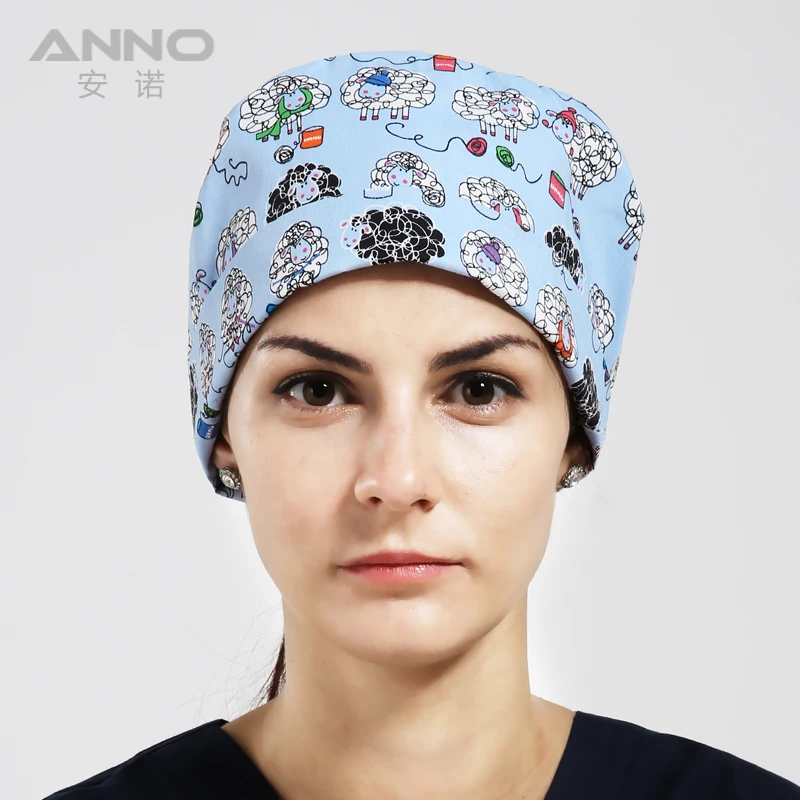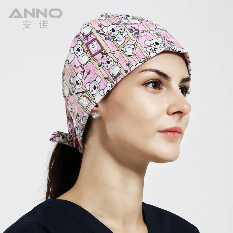 ANNO Adjustable Hat Cotton Medical Surgical Caps Nurse Hats for Women Men Cartoon Hospital Accessories Ground Head Wear
