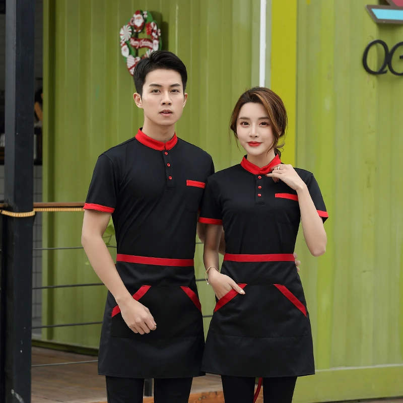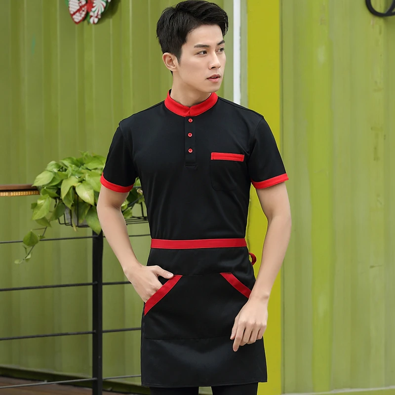 Male Female Short Sleeve Spliced Chef Cooking Workwear 2019 Catering Restaurant Coffee Shop Waiter Uniforms Casual Tops 4XL