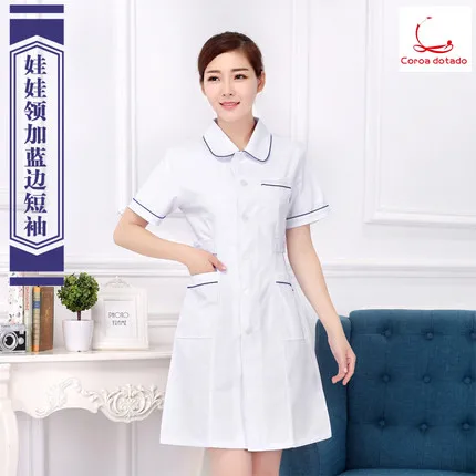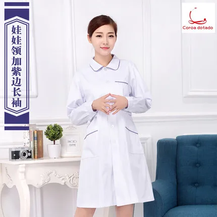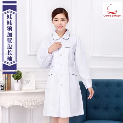 Discount Round collar nurse dress long sleeve women's winter dress doll collar with blue edge white coat short sleeve workwear