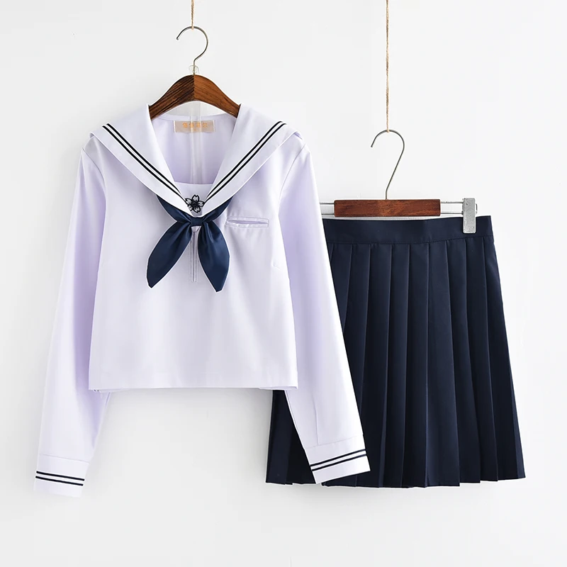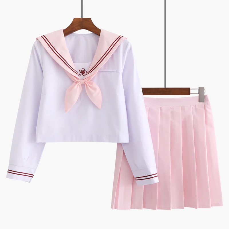Discount UPHYD Japanese Student Uniform Lolita School Uniforms Sakura Embroidery High School Sailor Suits Top+Skirt+Tie