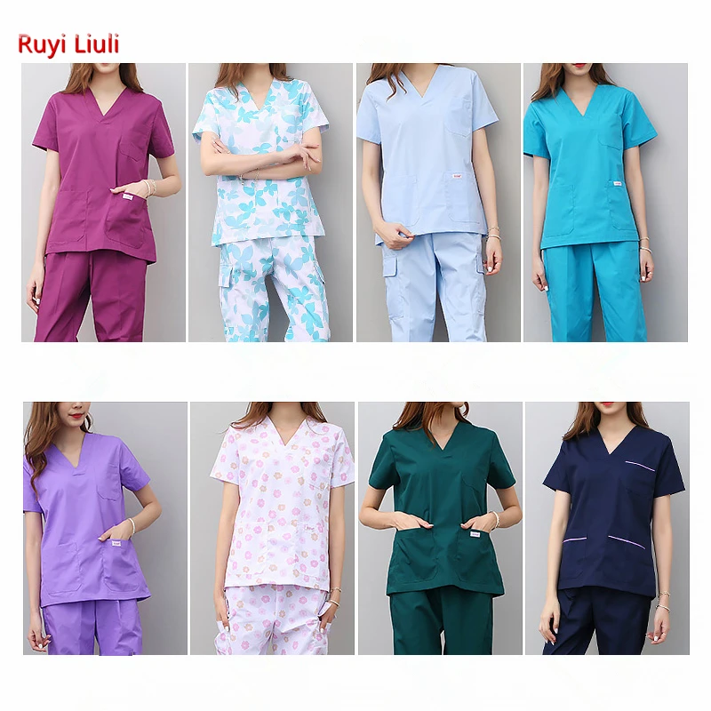 Ruyi Liuli-New Fashion Short Sleeved Women Suits Surgical Gowns Clothes Brush Hand Clothes Nurse Doctor Cotton Solid Unitform