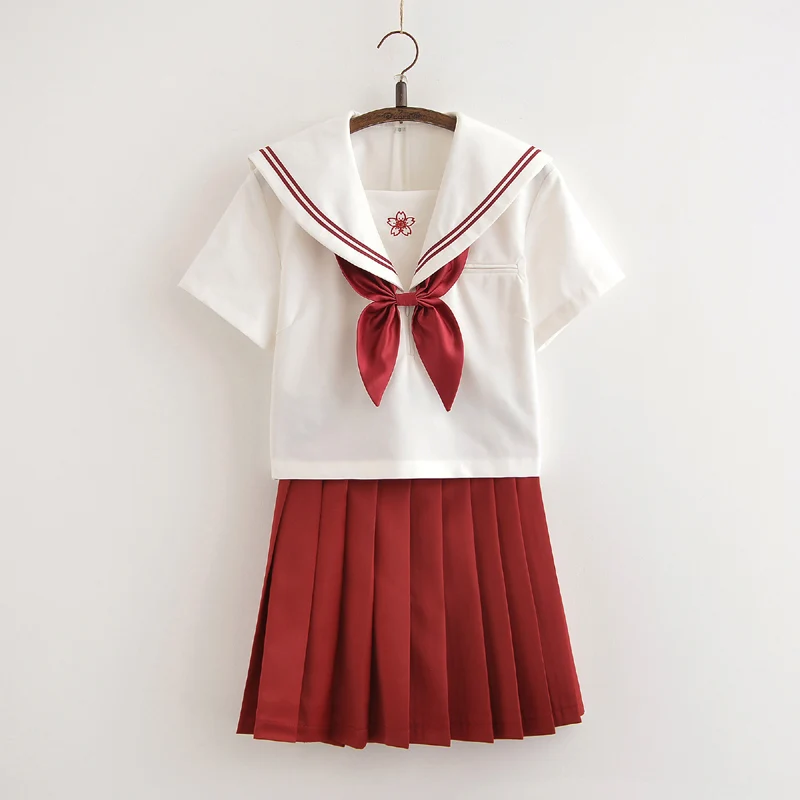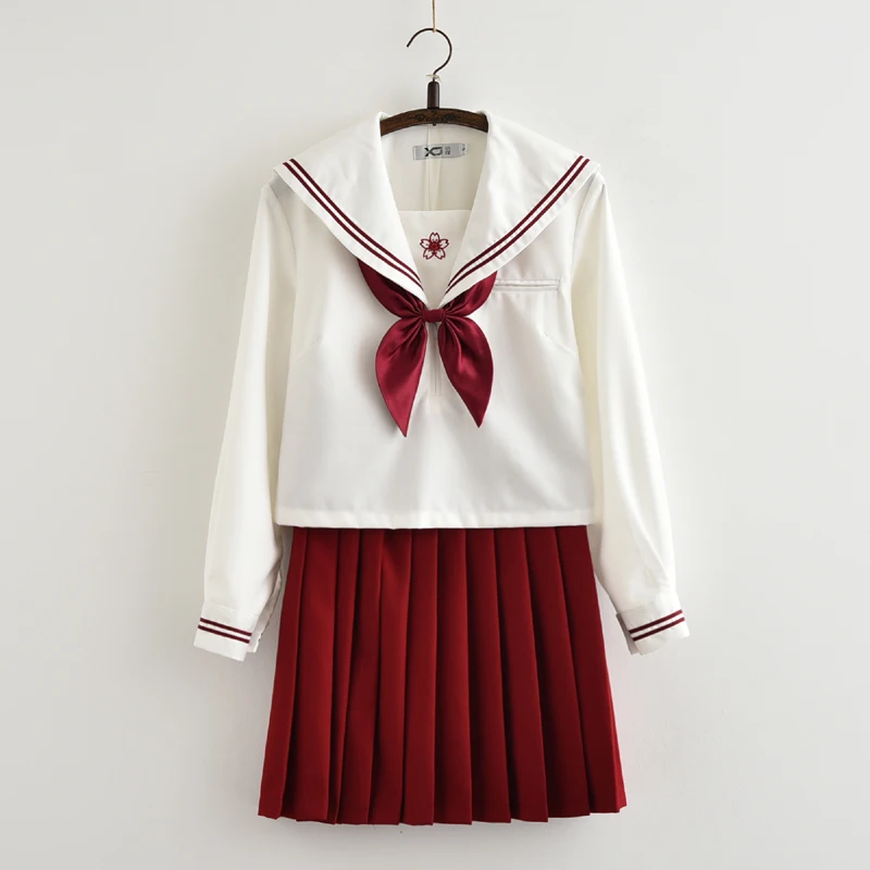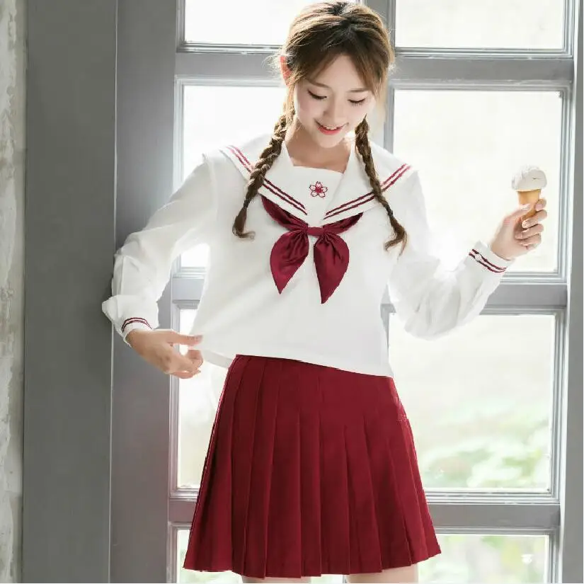 Japanese korean anime girl cosplay costume sakura embroidered school uniforms cute girl sailor suit jk student uniform Top+Skirt