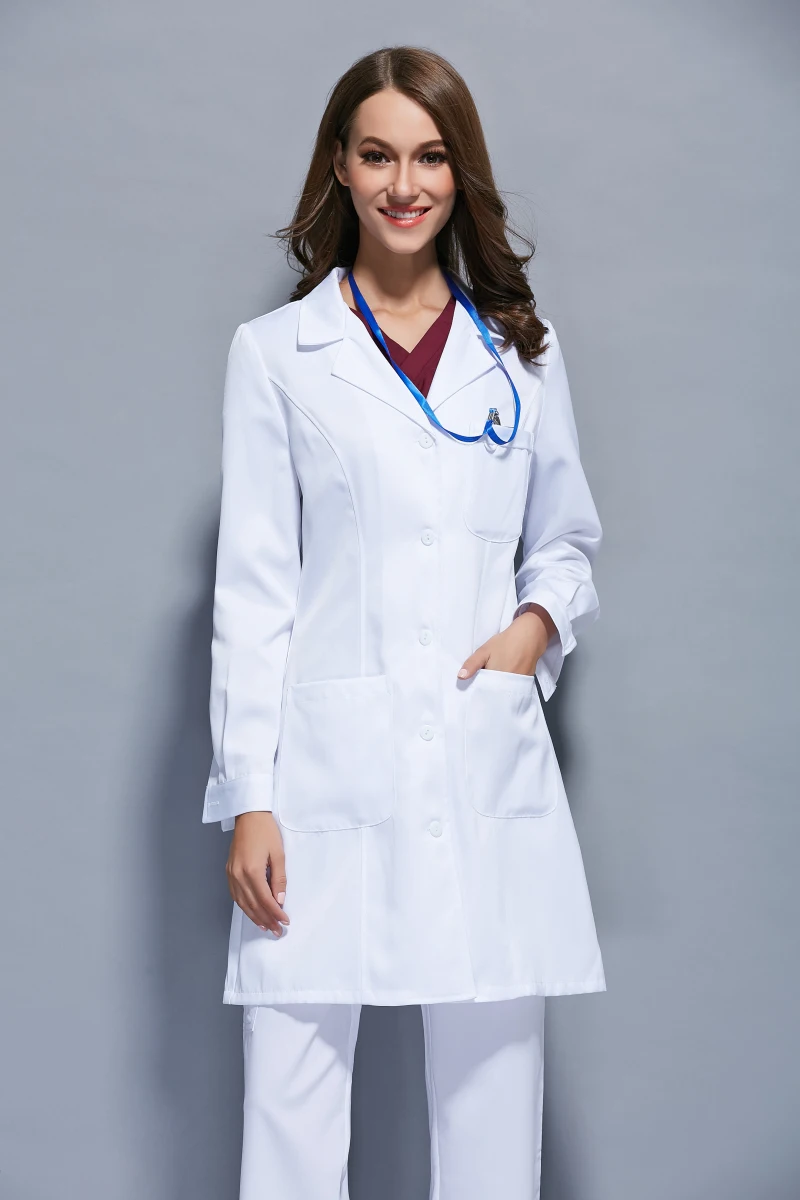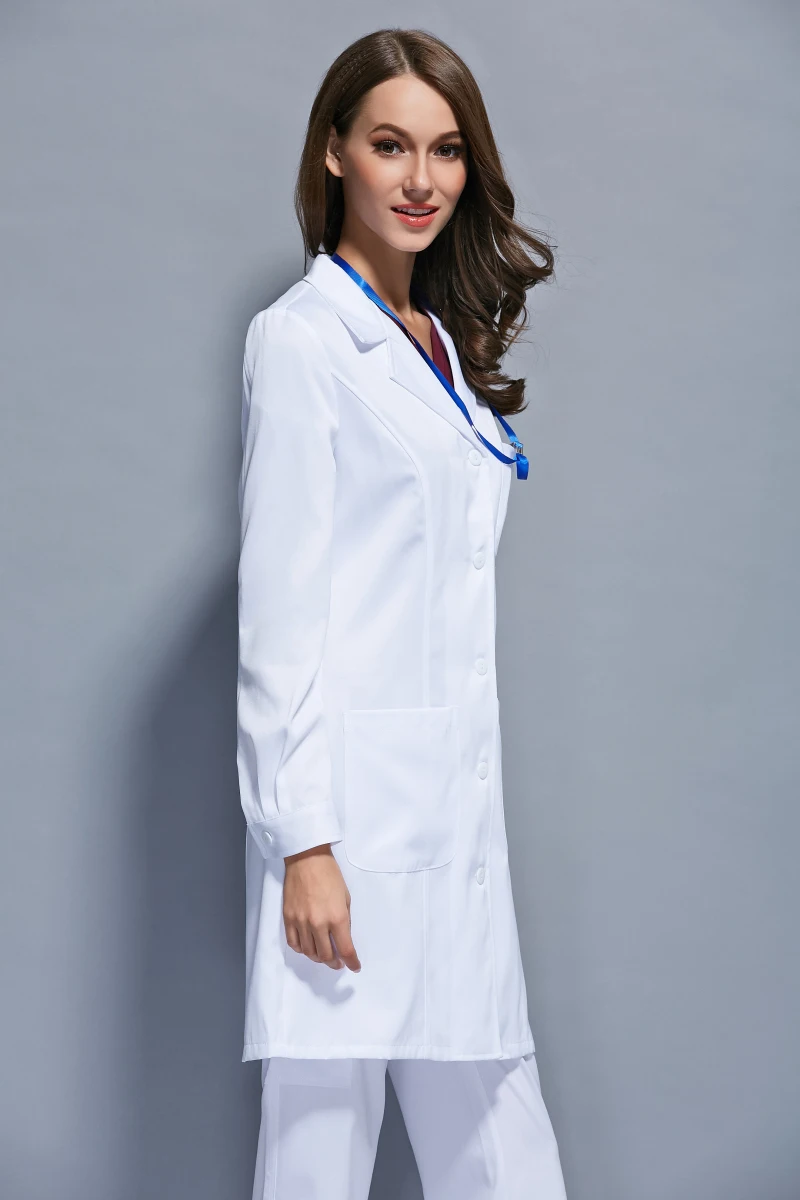 Limited Offer Autumn and winter women anti-wrinkle long sleeve nurse uniform dental clinic doctor's outcoat slim fit white color free ship