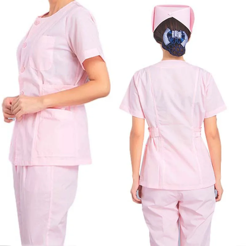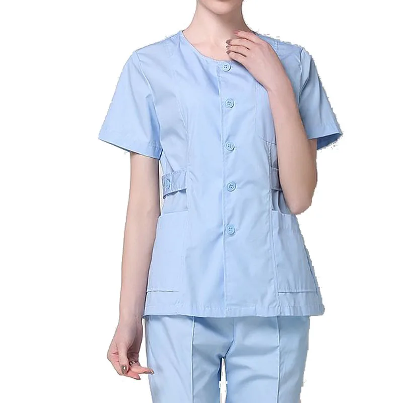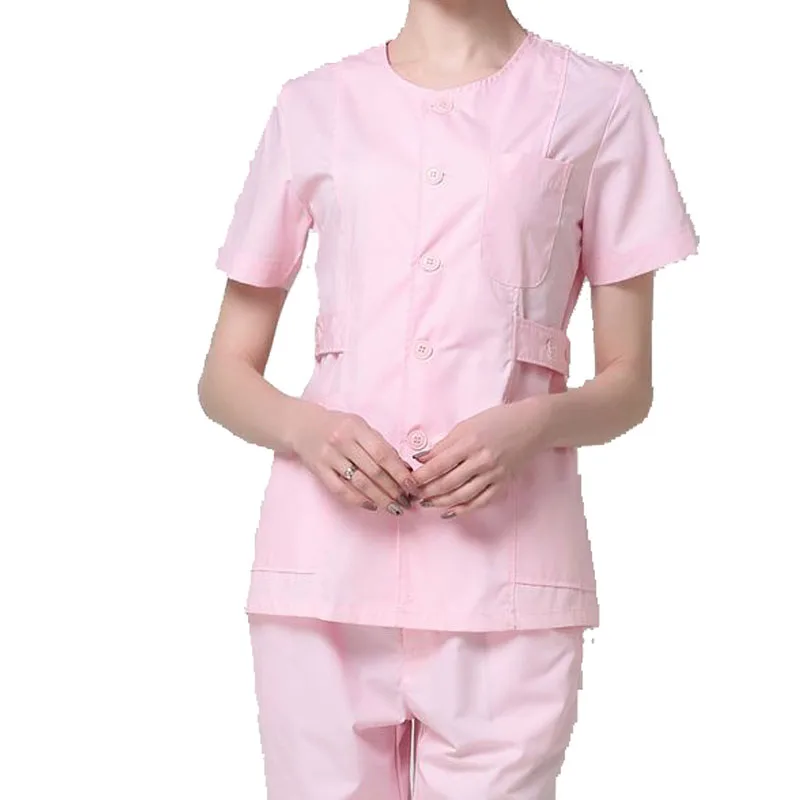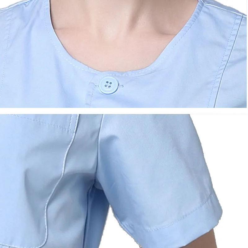SET Women's Nursing Uniforms Medical Scrub Sets Short Sleeves collarless Tops and Pants