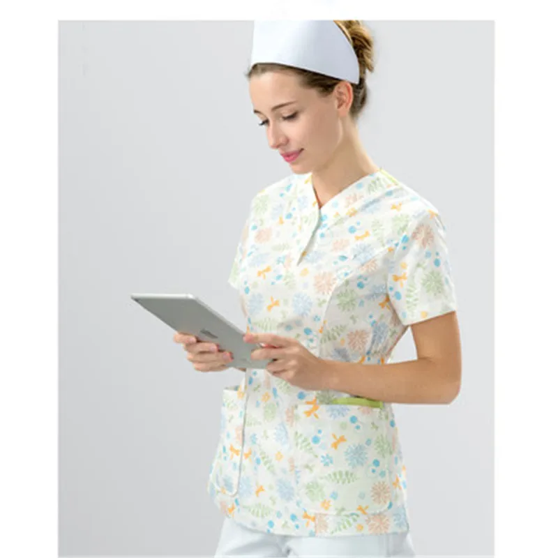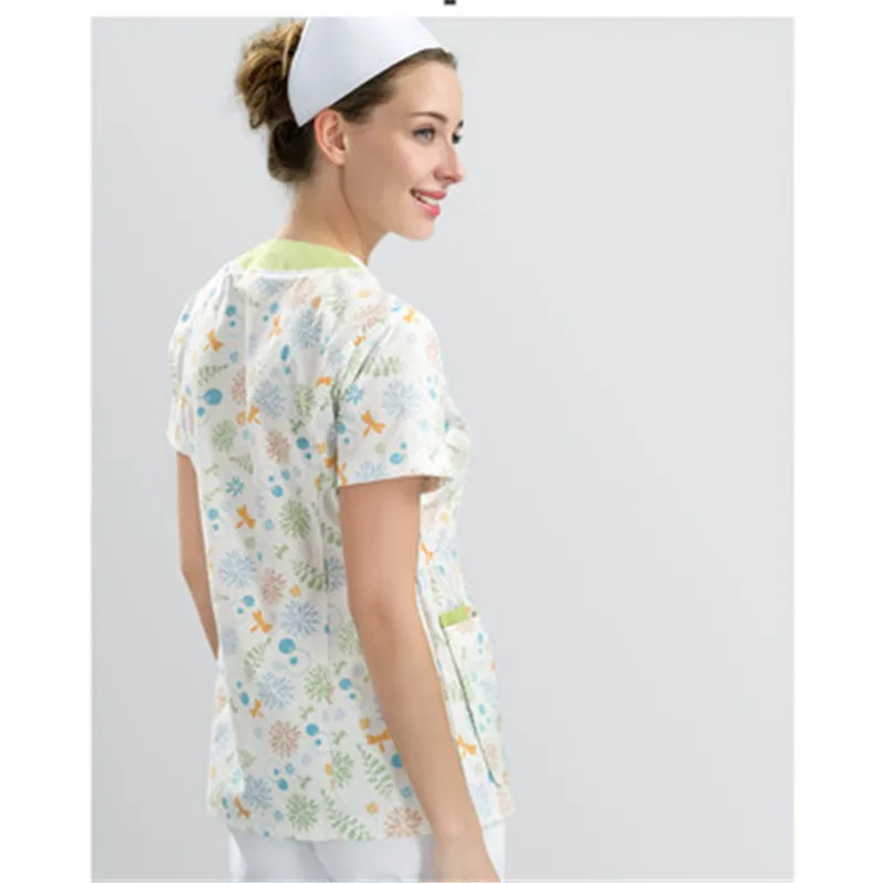 Nurse's coat women's summer short-sleeved hand-washing clothes printed inside the dress maternity and beauty hospital work cloth