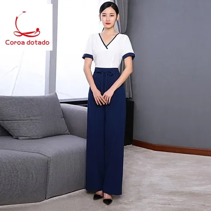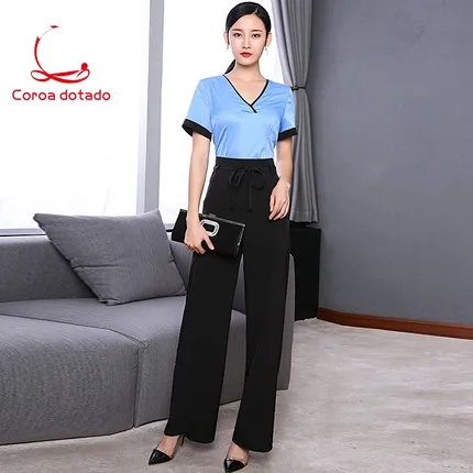 OFF!! New hotel pedicure shop female technician seven points sleeve suit spa health salon cosmetologist pants work clothes only $