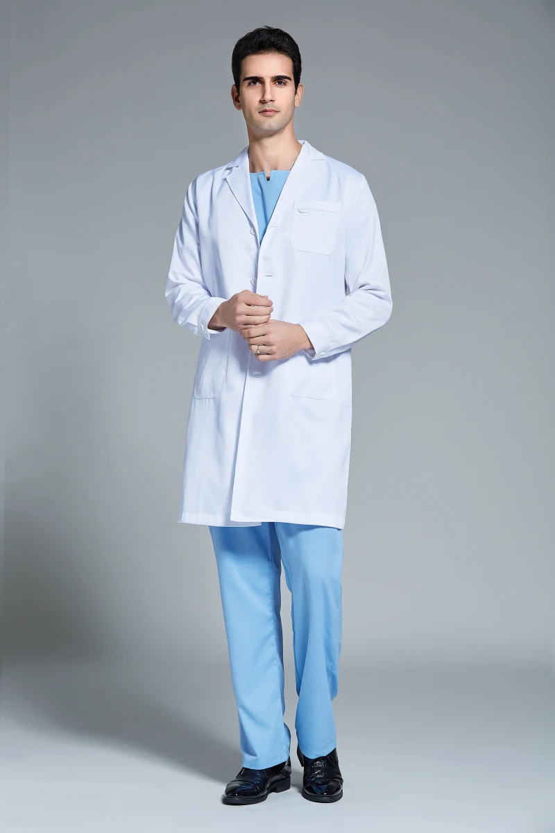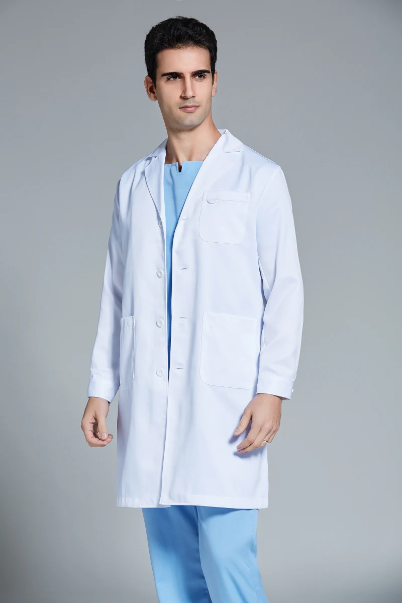 Autumn and winter men's long sleeve overcoat dental clinic doctor's outcoat white color free ship