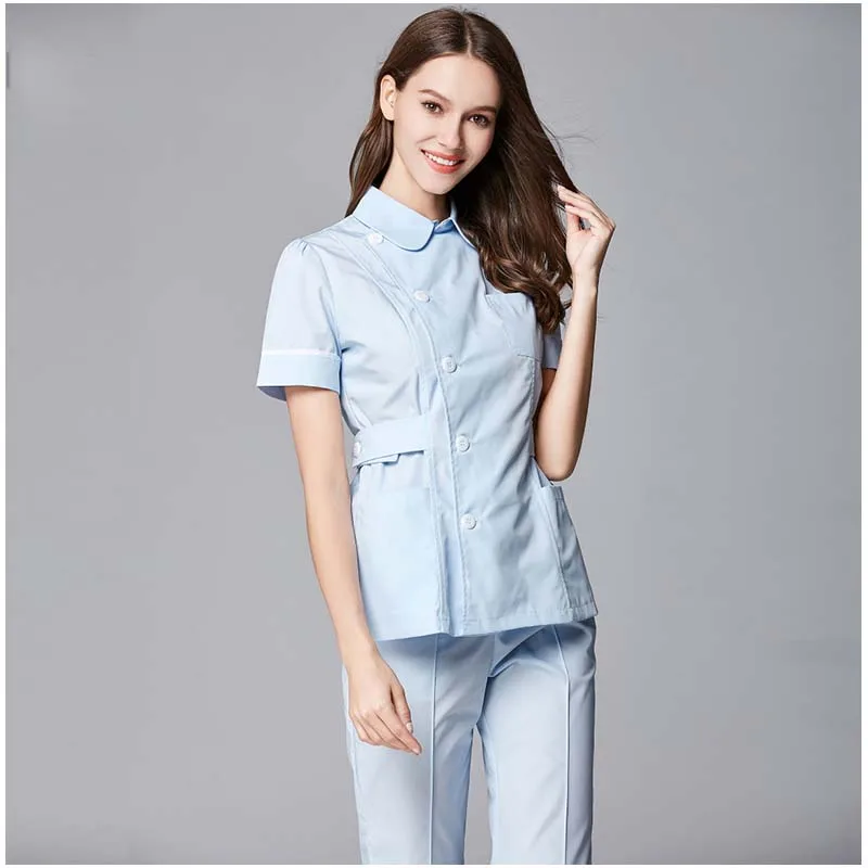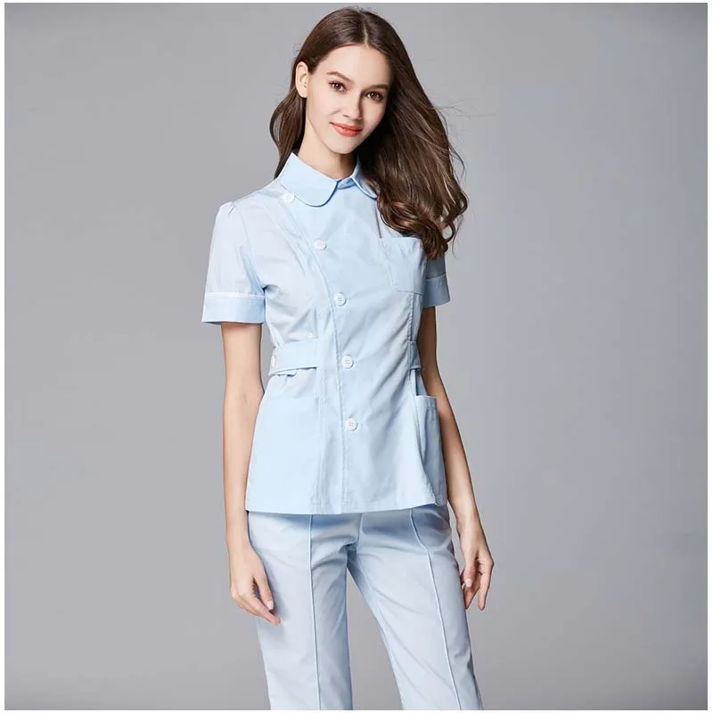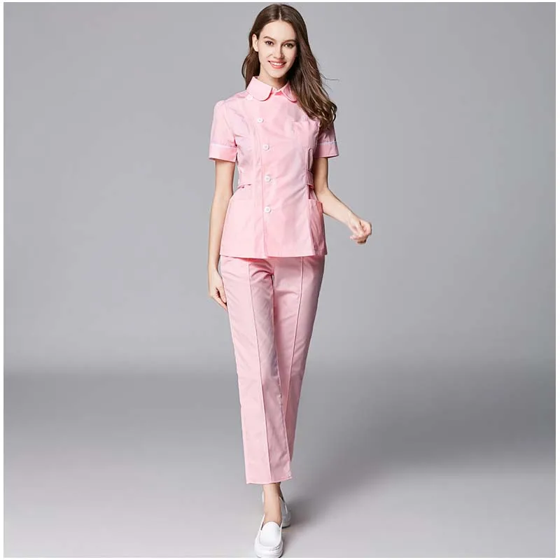 Wholesale Nurse service Party doll collar Split suit Summer Pink coat Drugstore Front desk Medical beauty salon Medical work Uniform only $46.07