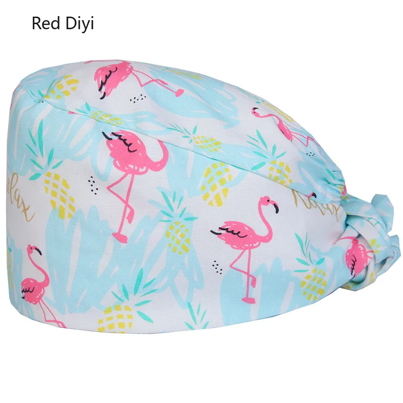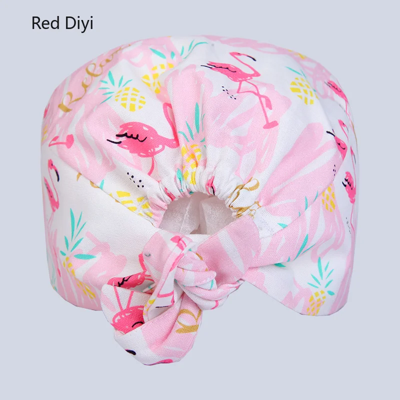 RedDiyi New lab hospital medical surgical cap 100% cotton printed medical scrub operation caps flamingo