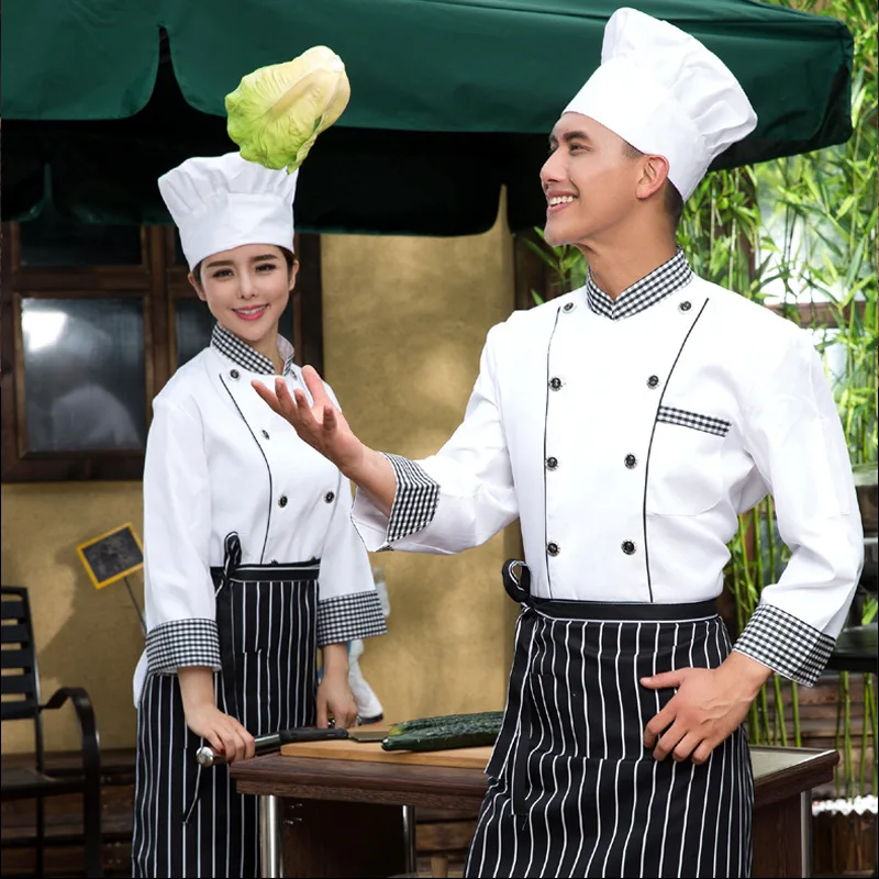 New Arrival Chef's Uniform Long Sleeve Hotel Cooker's Outfit Hotel Chefs Uniform The Kitchen Chef Costumes Plus Size B-5576