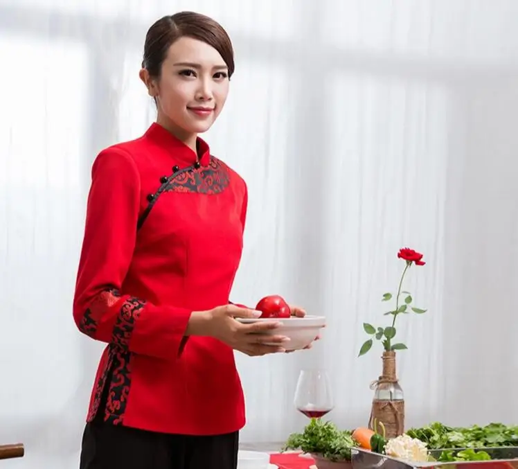 6% OFF!! Chines style Waiter clothes long sleeved Hotel Chinese traditional Restaurant Restaurant clothing Customized logo dress