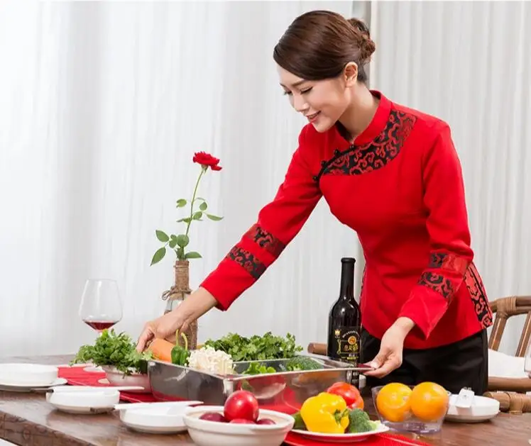Aliexpress has Chines style Waiter clothes long sleeved Hotel Chinese traditional Restaurant Restaurant clothing Customized logo dress for just $42.30 shipped.