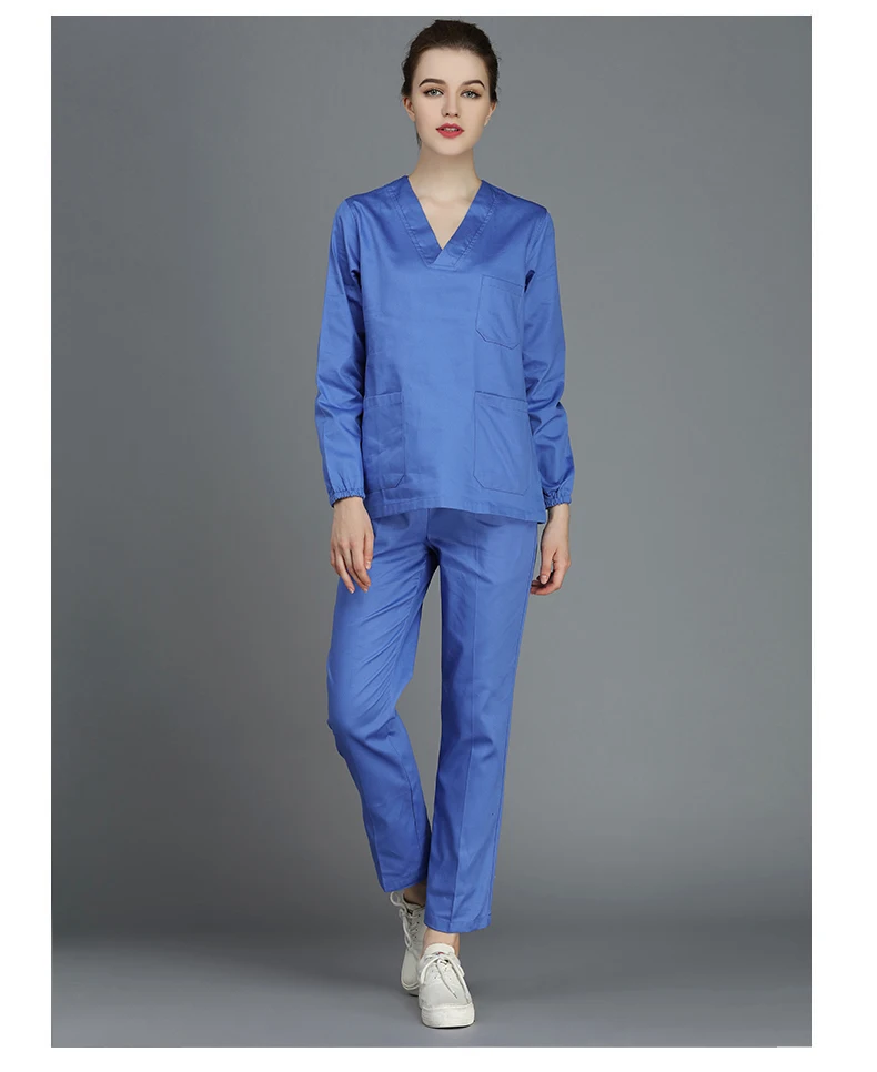 Unisex Hospital Work Uniform Nurse Doctor Dental Clinic Surgery Cotton Clothes Medical Scrub Set V Neck Long Sleeve Top + Pants