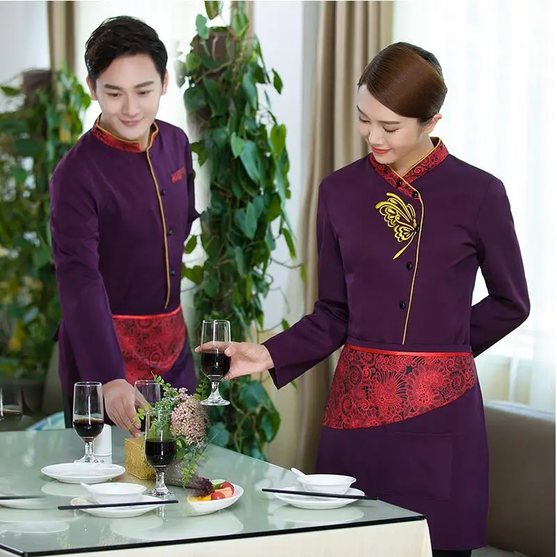 6% OFF!! Vintage style Food Service Uniform Long Sleeve Hotel , Coffee Shop Waiter Uniform Restaurant Waitress Uniform for men and Women