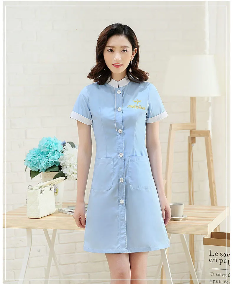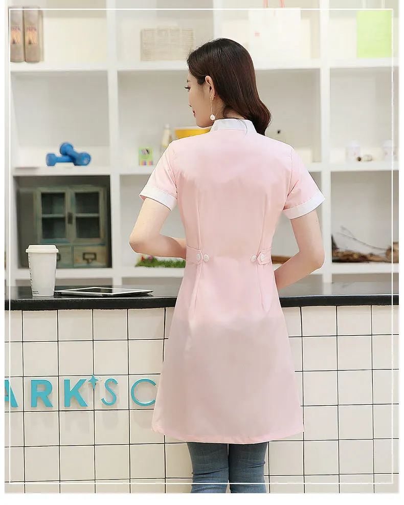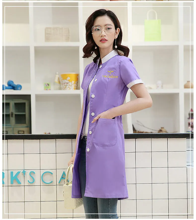 8% OFF!! Women's Summer Stand Collar Short sleeve sleeve nurse uniform dental clinic doctor's uniform slim fit doctor white coat