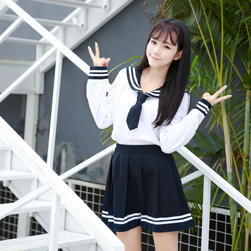 Autumn Japanese Uniforms Navy Sailor Suit For Women Kansai Students Long Sleeve Costume School Uniform For Girls