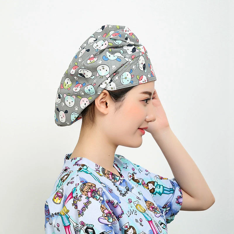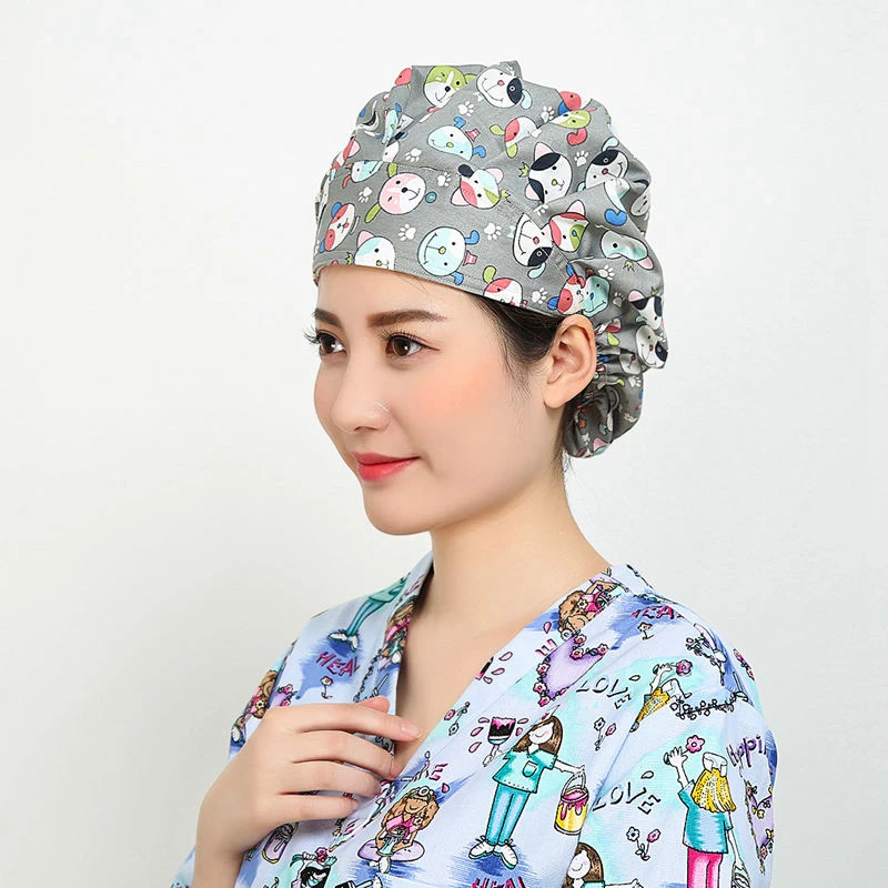 Fashion Unisex Doctor Surgical Cap Scrub Cap Pattern Flower Printing Lab Scrub Bouffant Medical Surgical Surgery Hat Nursing Cap