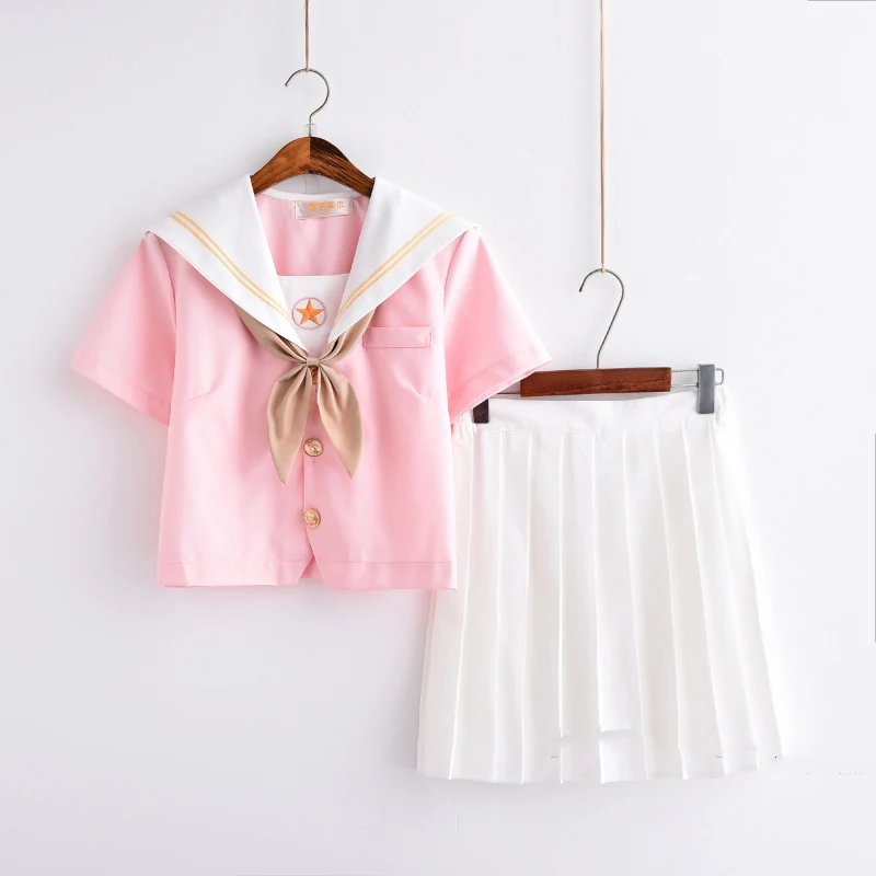 Best Seller Sakura light pink Japanese school uniform skirt jk uniform class uniforms sailor suit college wind suit female students uniforms only $25.90
