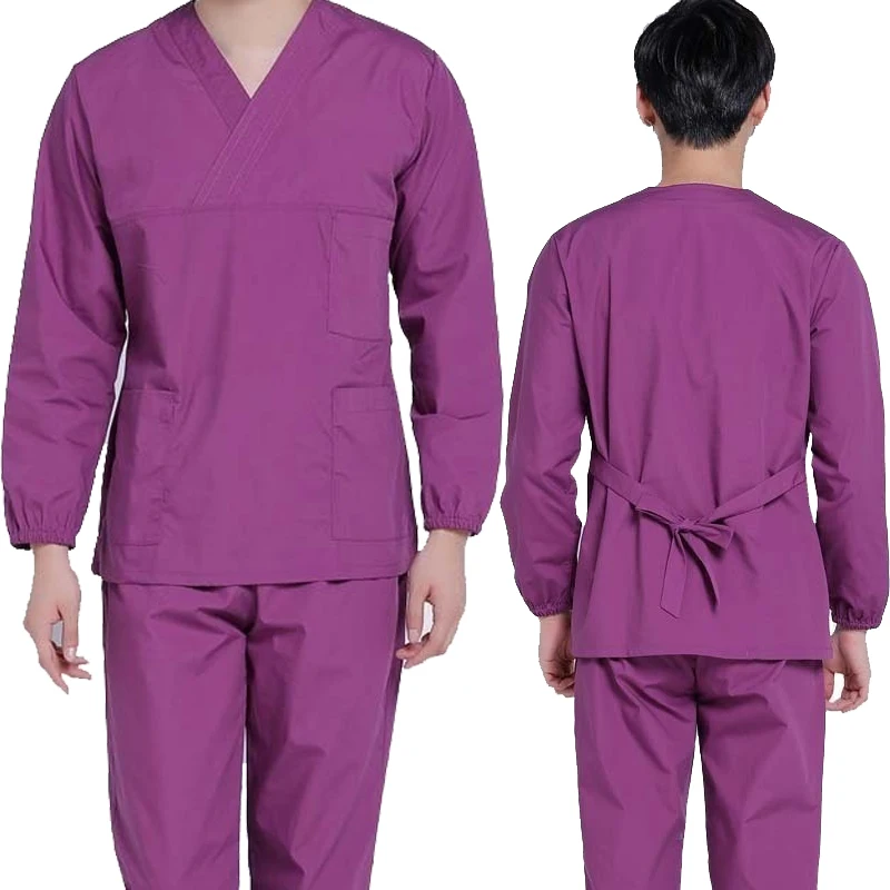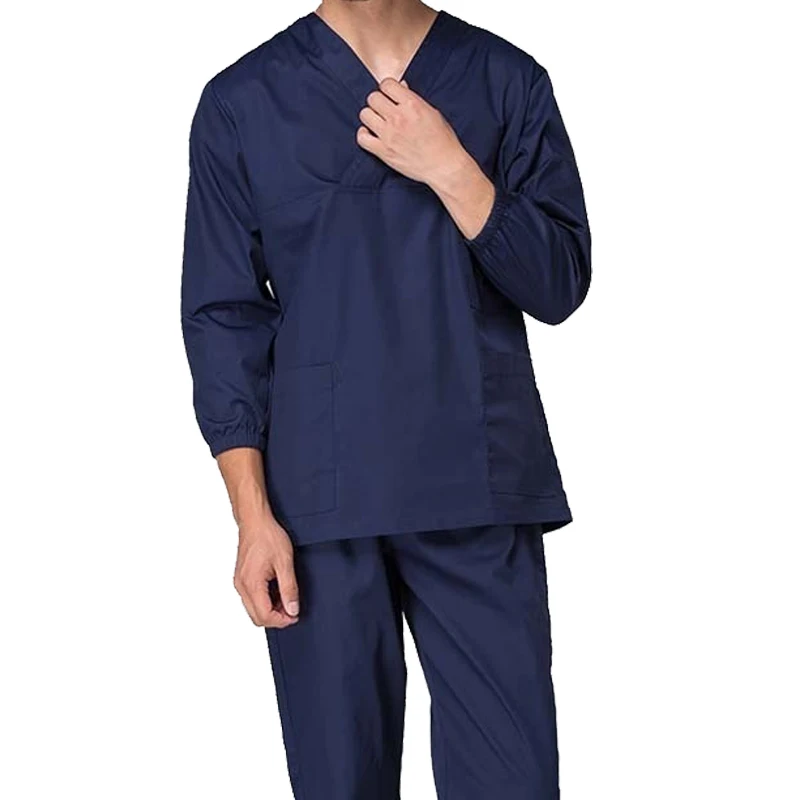 SET Men's Fashion V neck Long slee Elastic Waist Pants Surgical Clothing Hospital Lab Clothing Scrub Set/Medical Uniforms