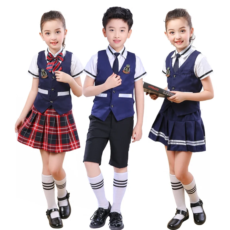 Buying Guide Children's Chorus Costumes Student Boys and Girls Prestigious British Style Vest + Shirt + Skirt School Uniform Set only $19.64