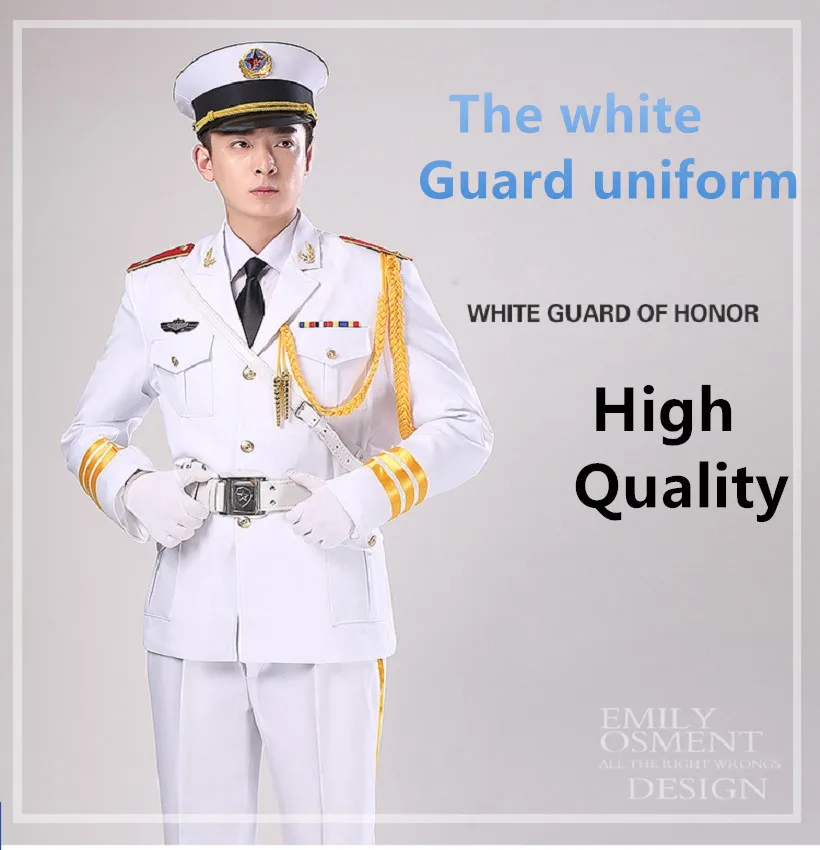 Buying Guide Male and female white guard hornist art costumes Flag raising ceremony suit Military Uniform-Guard Suit Army drummer clothing
