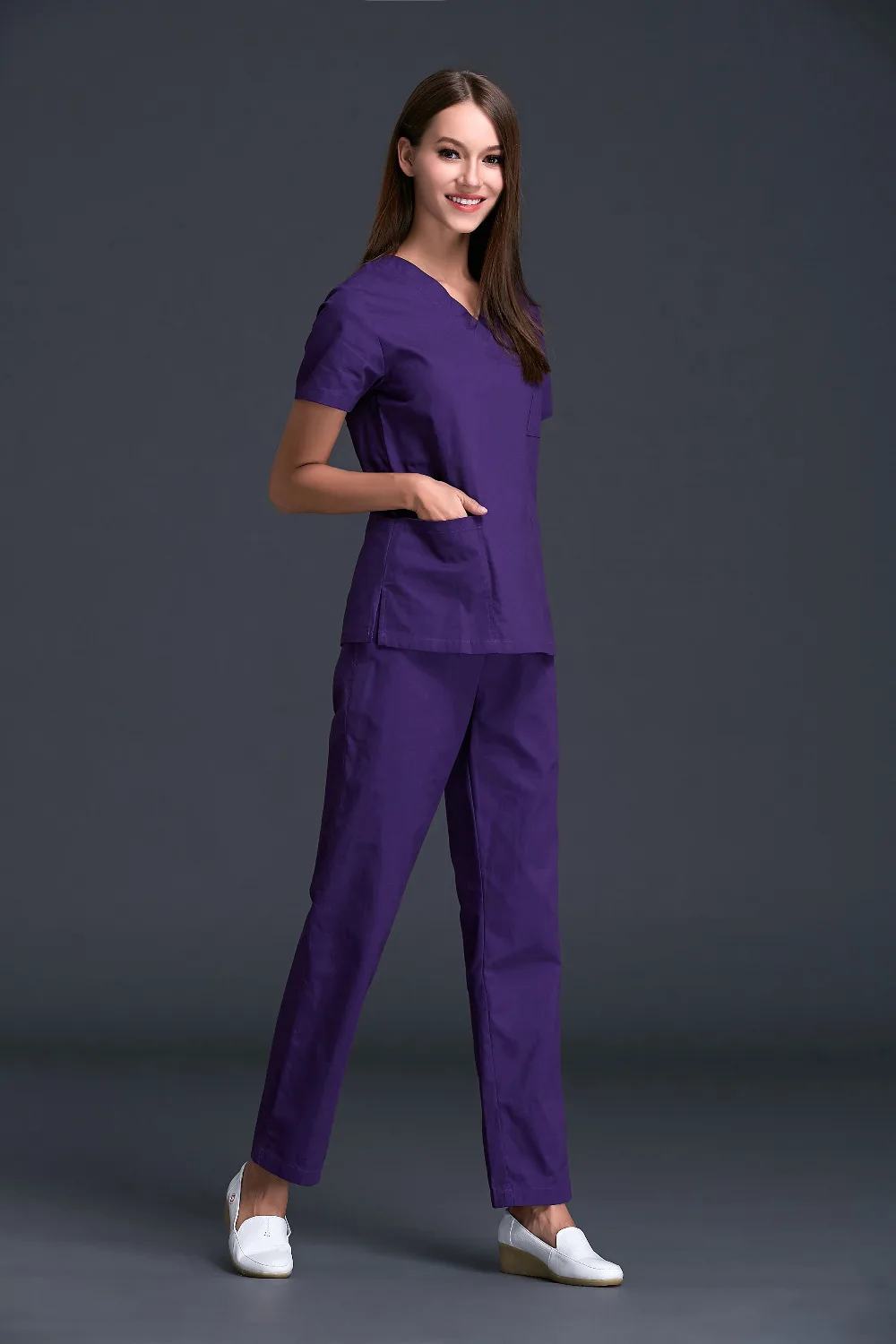 Medical Scrubs Women 2016 New Women's Short Sleeve Medical Scrub Uniforms Set Dental Hospital Clothes 100% Cotton