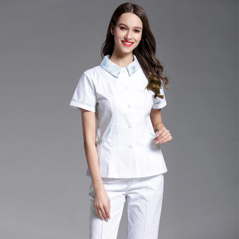 Buying Guide Nursing service party doll collar split suit summer blue flower pharmacy front desk medical beauty salon medical work clothes only $49.24
