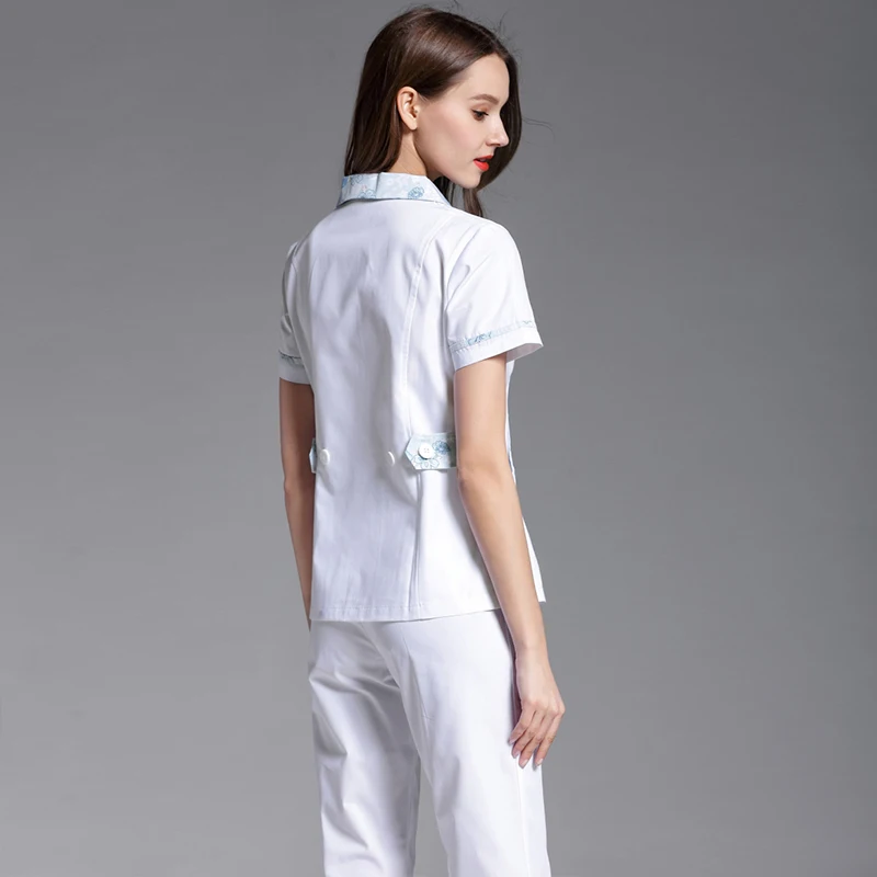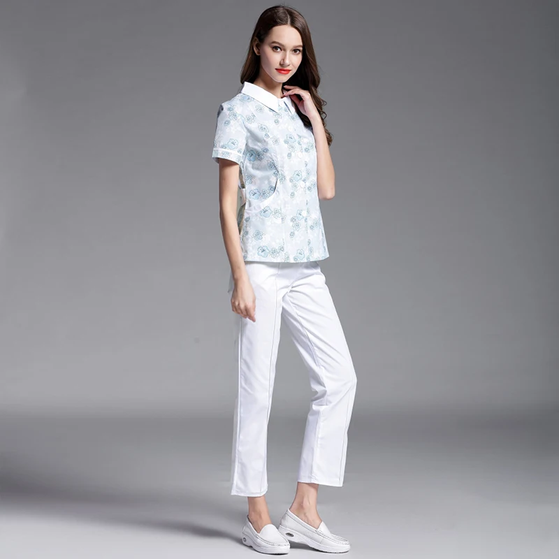 Nursing service party doll collar split suit summer blue flower pharmacy front desk medical beauty salon medical work clothes