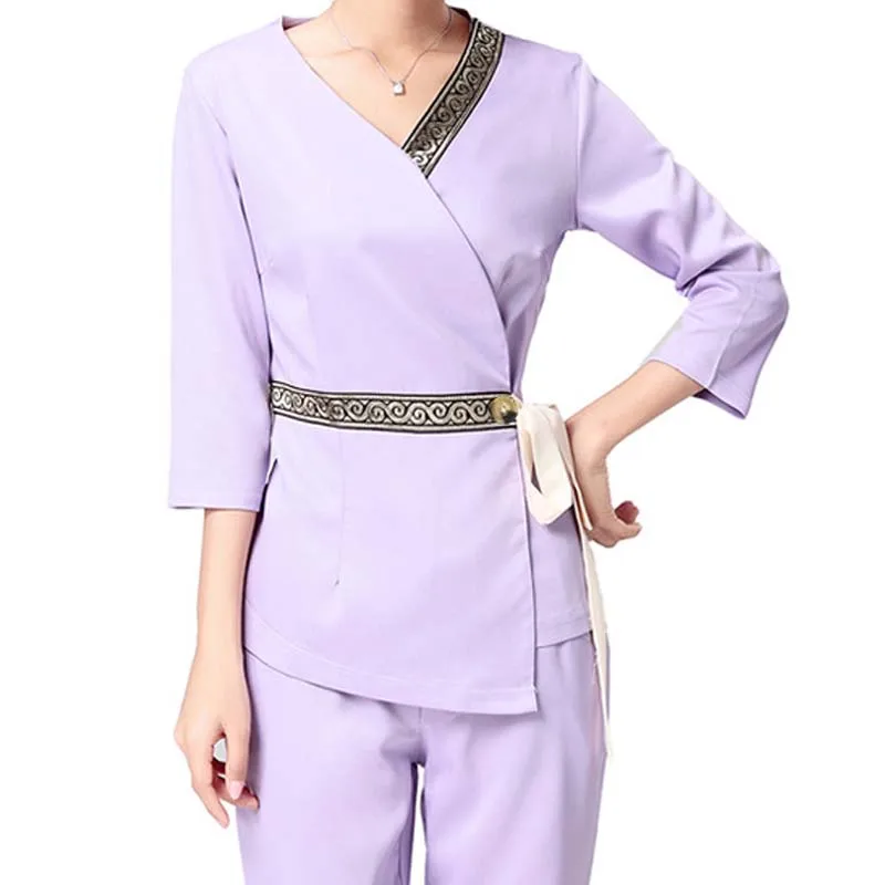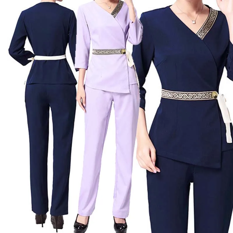 Buying Guide SET Women's Trendy Waistband Scrubs Set/Medical Uniforms/ Beauty Parlor/Spa Club Tunics/High Quality
