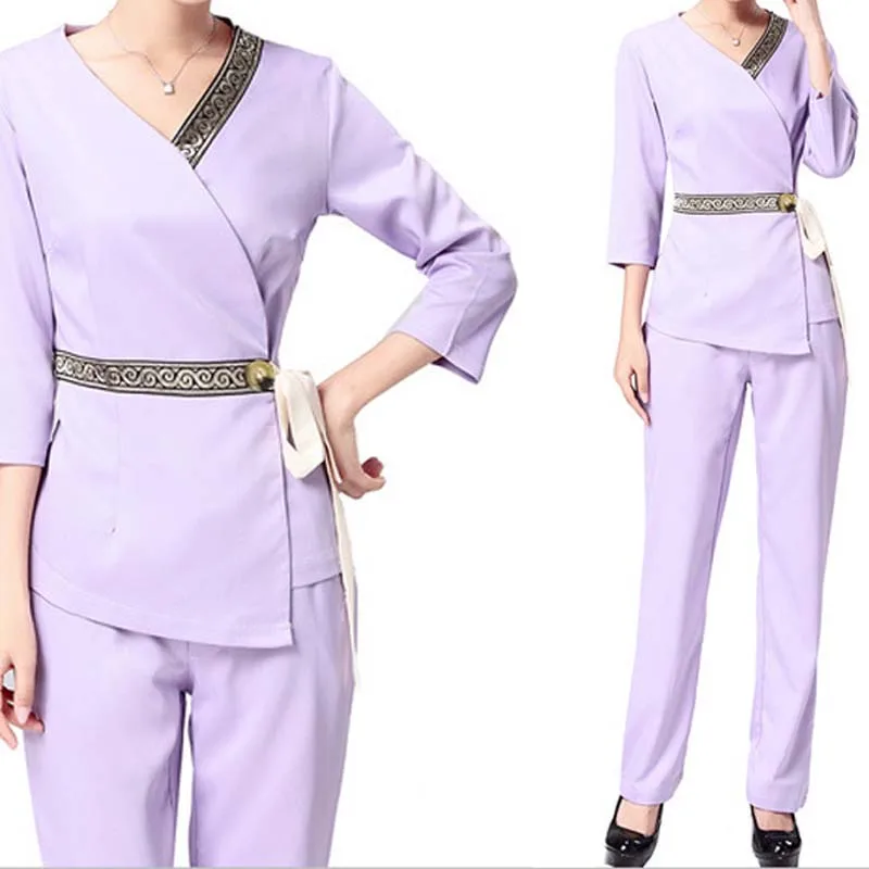 Aliexpress has SET Women's Trendy Waistband Scrubs Set/Medical Uniforms/ Beauty Parlor/Spa Club Tunics/High Quality for just $31.68 shipped.