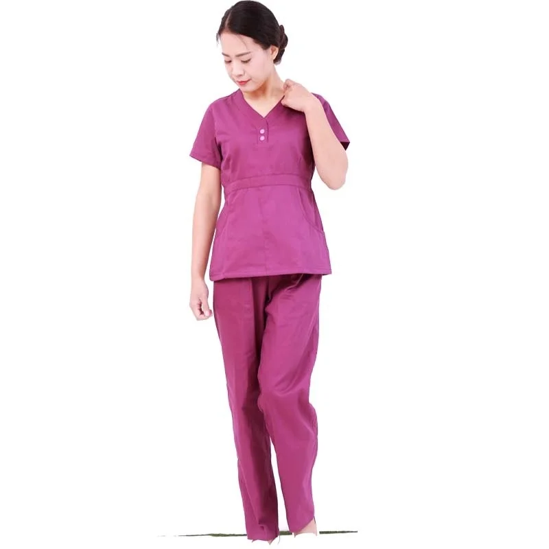 Buying Guide Women's pure cotton scrub top Elastic Waistline Medical clothing Nursing Uniforms