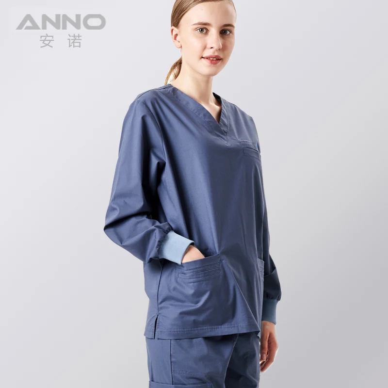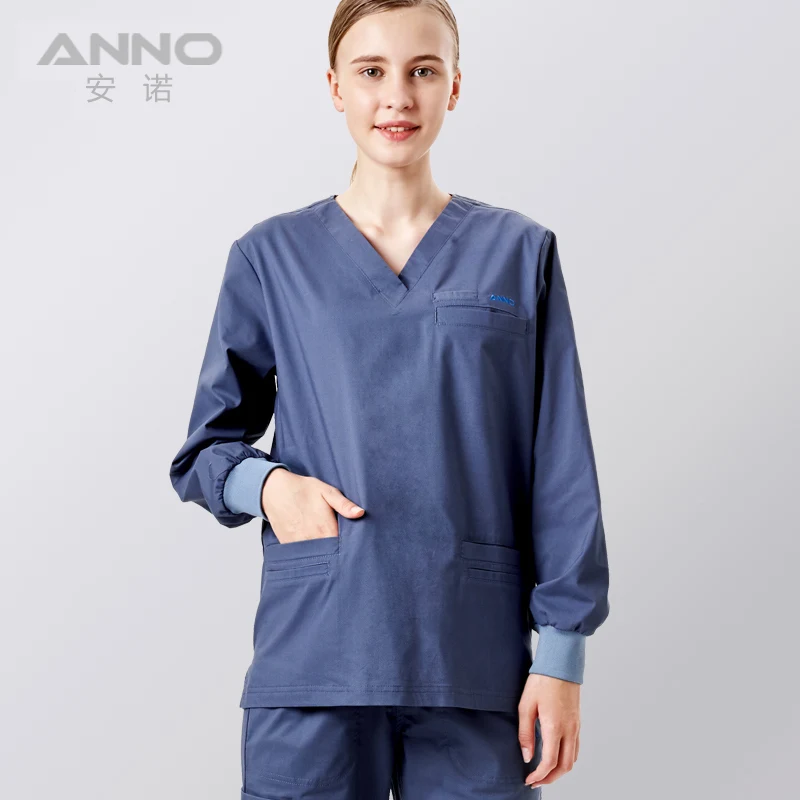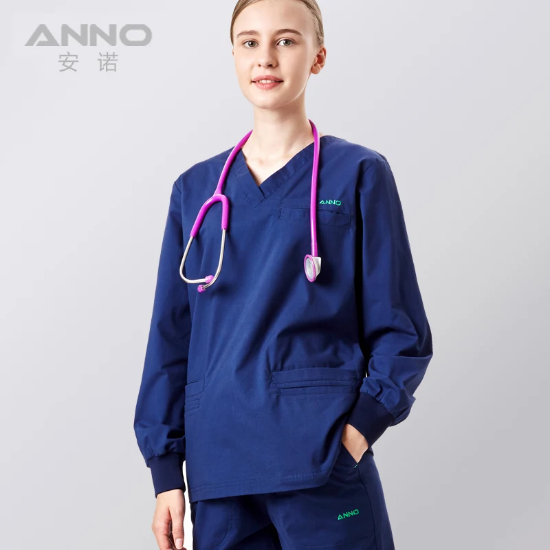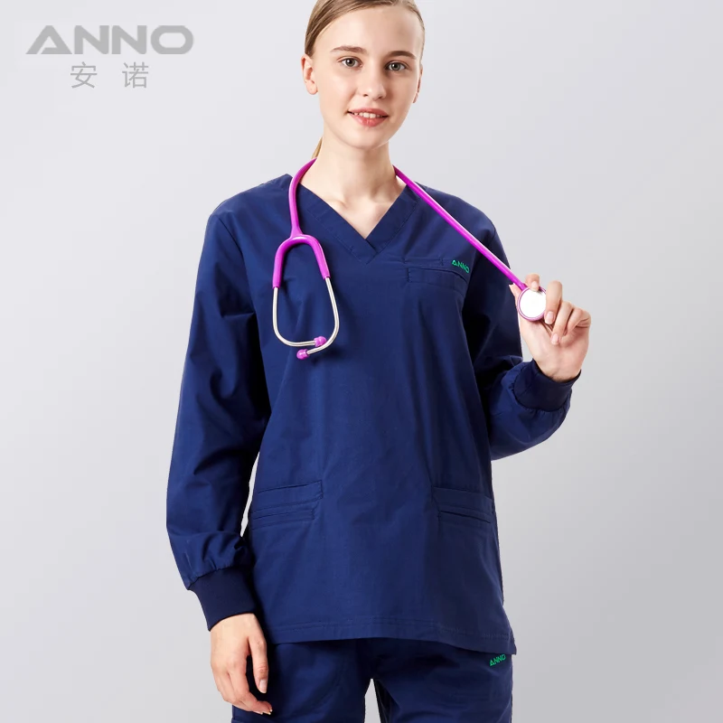 Discount ANNO Elasticity Medical Clothing Long Sleeve for Women Men Hospital Nursing Scrubs Set Clinical Uniforms Surgical Suit