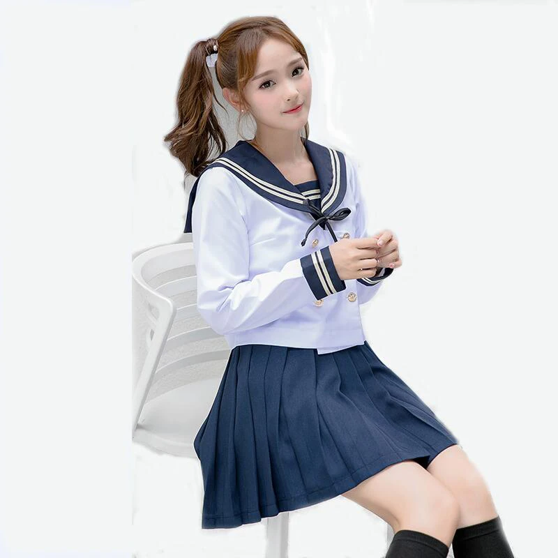 Discount New sweet wear High quality sailor suit students school uniform for teens preppy style uniform JK fashion School Uniform Sets