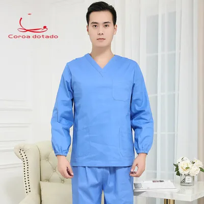Operation clothes dark green cotton brush hand wear short sleeve men's and women's isolation clothes doctor's clothing