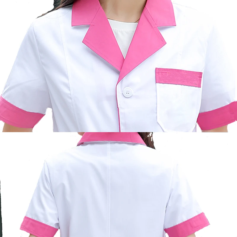 SET Nurse Short Sleeved 2 Colors(red Collar/dark Blue Collar) Lab Coat Pharmacy Doctor Overalls Uniform Nurse Health Coat