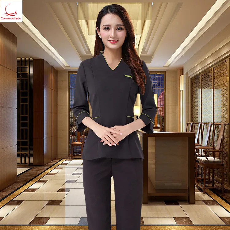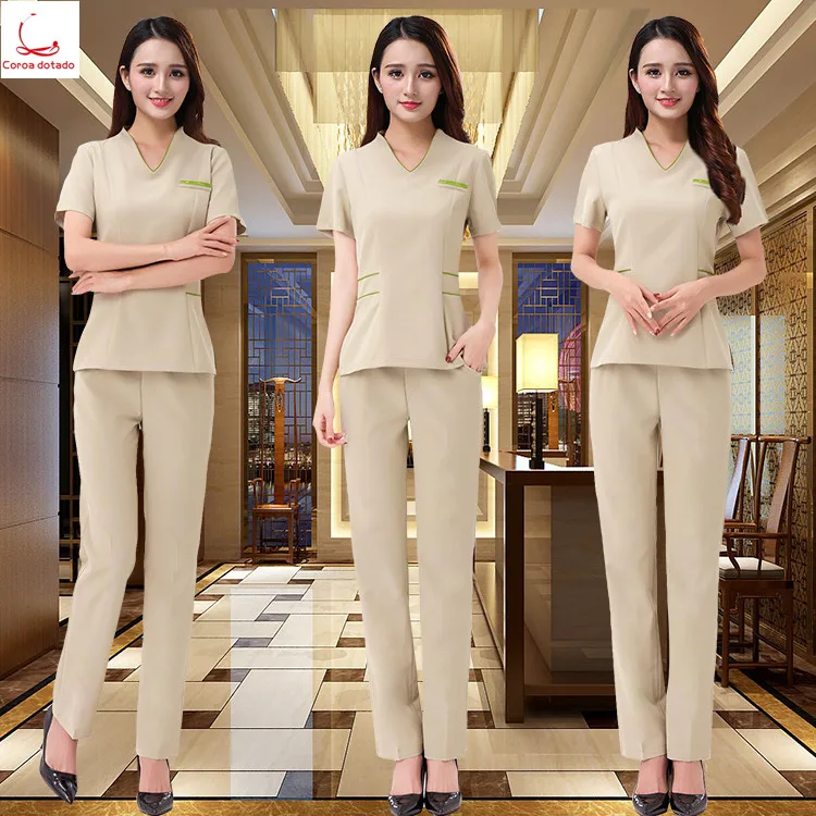 FREE SHIPPING Beauty salon beautician short sleeve set foot bath work clothes foot massage shop overalls hotel foot massage technician pants