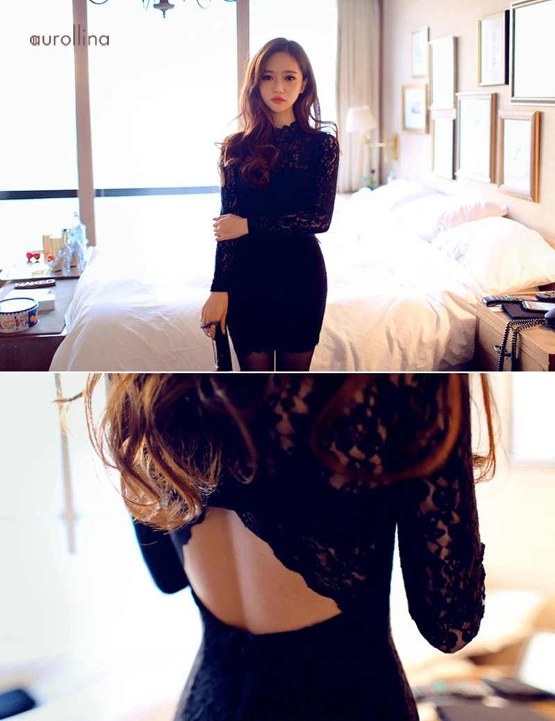 Black Hollow Out Lace Dress Charming Female Curve Party Outfit Air Hostess Uniform Japanese Mature Teachers Formal Mini Skirt