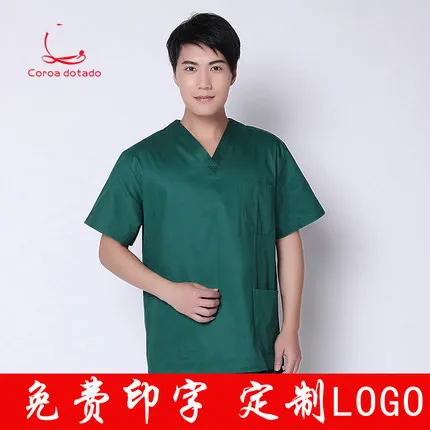 FREE SHIPPING Surgical clothes Korean hand-washing clothes short sleeve thin split suit nurses hospital women brush hand clothes dark green