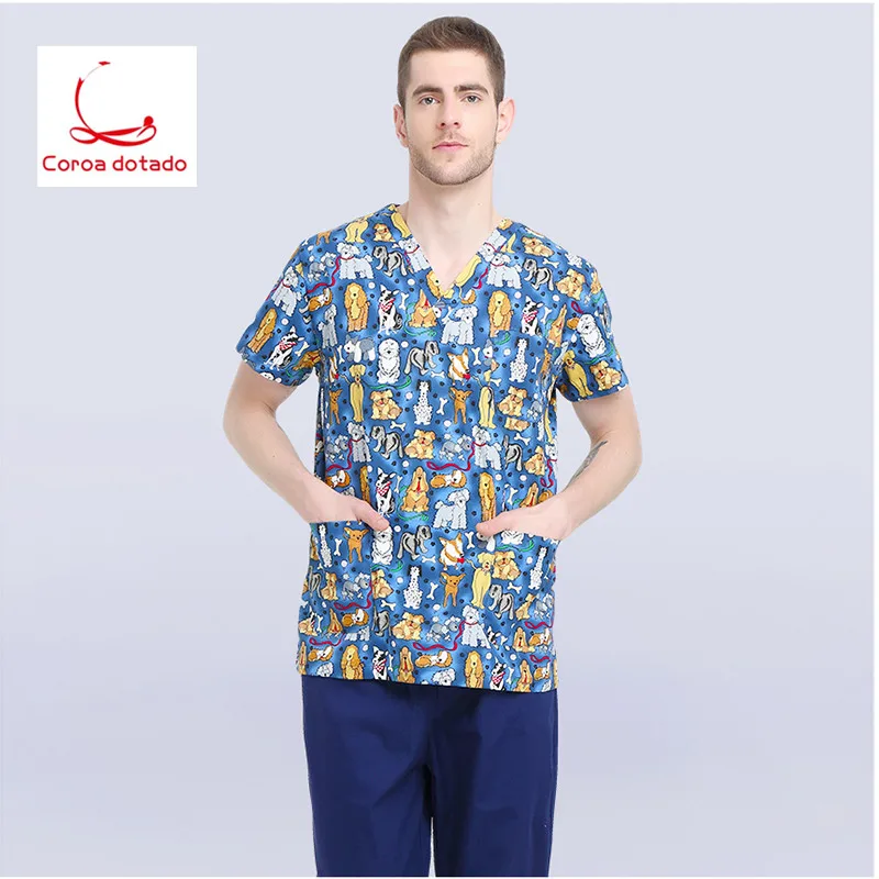 2019Veterinary Workwear Puppy Pattern Printing Surgical Gown Medical Professional Uniform Set Pet Hospital Doctor Nurse Uniform