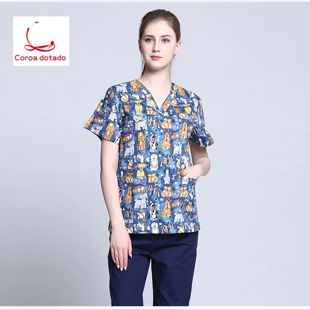 Limited Offer 2019Veterinary Workwear Puppy Pattern Printing Surgical Gown Medical Professional Uniform Set Pet Hospital Doctor Nurse Uniform