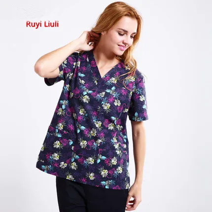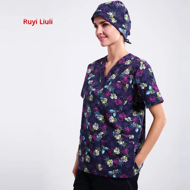 Limited Offer RYLL-Printed Medical Clothes T Shirts Pants Nurse Uniform Style in Scrubs Set Surgical Suit clinicos Nursing Scrubs