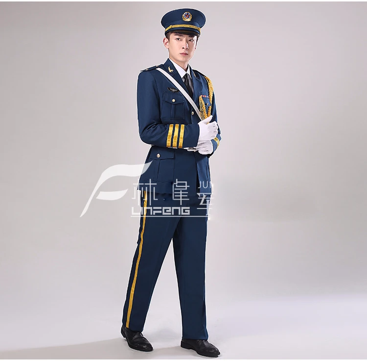 Limited Offer Unisex Blue China guard hornist art costumes Flag raising ceremony suits Military Uniform-Guard Suit Army drummer clothing PLA