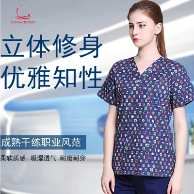 Cartoon design and color pure cotton operating suit doctor's overalls supply room disinfection hand-washing clothes