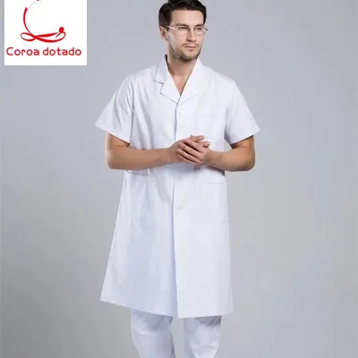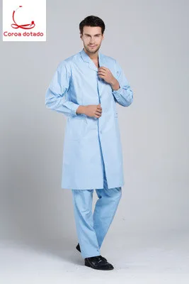 The doctor wears the laboratory pharmacy dentist's overalls and long-sleeved white coats