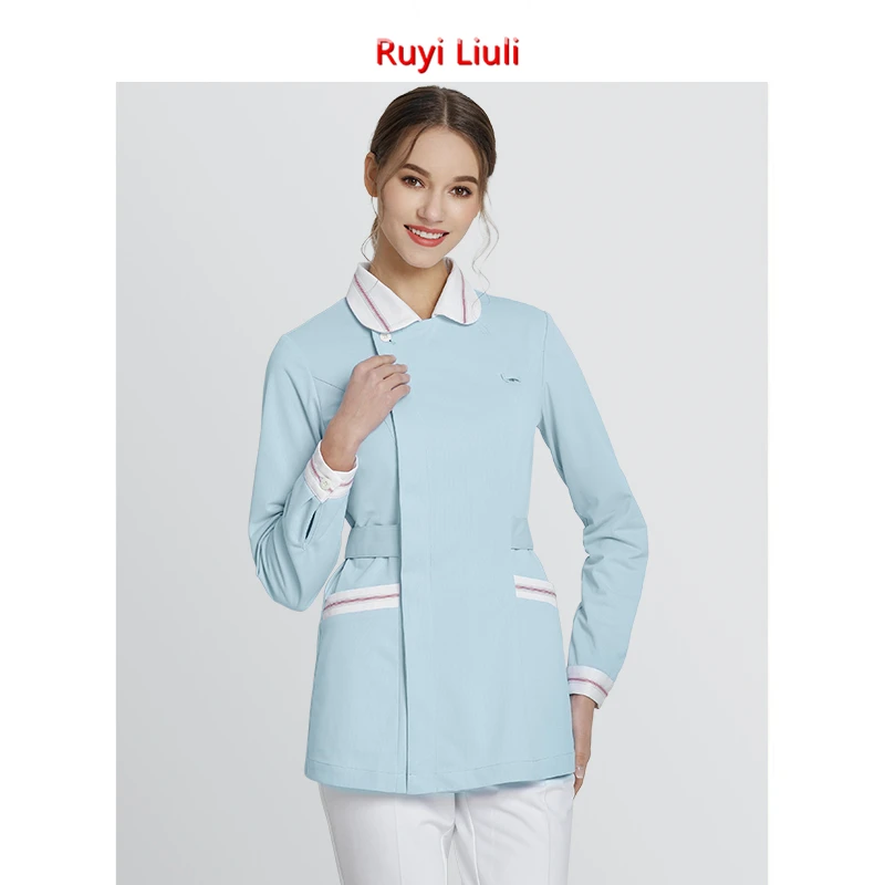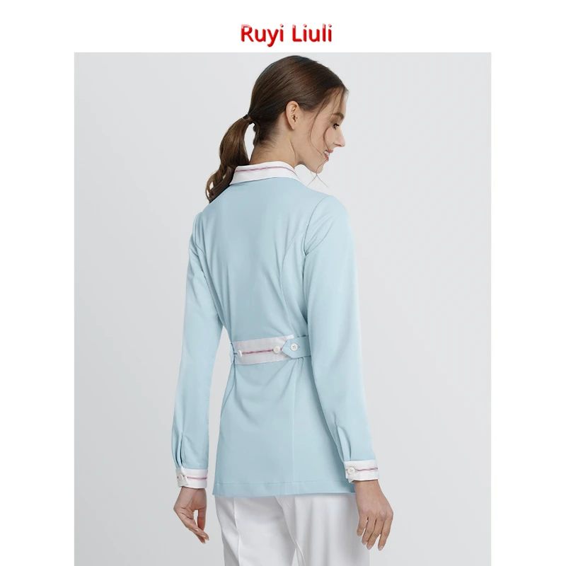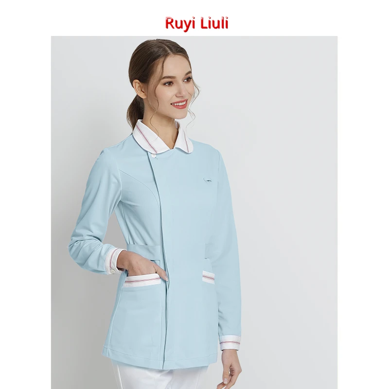 Nurse wear long sleeve hospital beauty salon work clothes female blue slim nurse wear autumn and winter coat